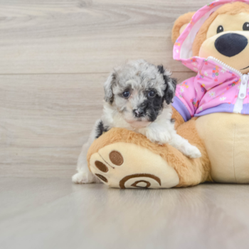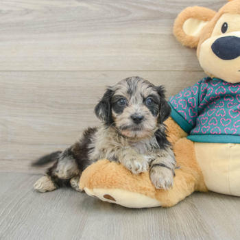 Charming, clever, affectionate, and playful, the Aussiechon is one of the most popular designer breeds in the United States. Aussiechons are lively, outgoing, and highly social pups. They are huge fans of dog parks and make fast friends with everyone they meet. With a cheerful nature and an infectious good mood, Aussiechons can light up any room. Aussiechon puppies are fun-loving, cheerful little things. They are fluffy and cuddly; they enjoy playtime and snuggles and are very easy to train. Aussiechons are adorable and small. They have an average weight between 8 and 20 pounds and an average height between 10 to 18 inches. Aussiechon puppies are a mix between a Miniature Australian Shepherd and a Bichon Frise.